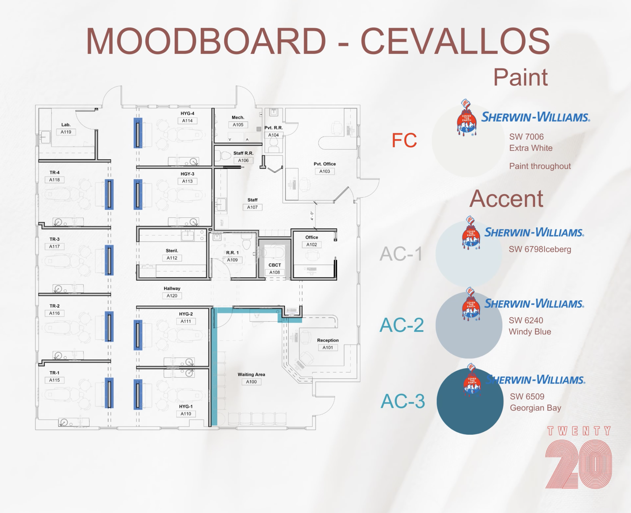 Every finish has a purpose. This moodboard captures the design intent behind a welcoming, efficient, and modern clinical environment. From calming color palettes to durable finishes, it sets the foundation for a thoughtfully designed healthcare space.