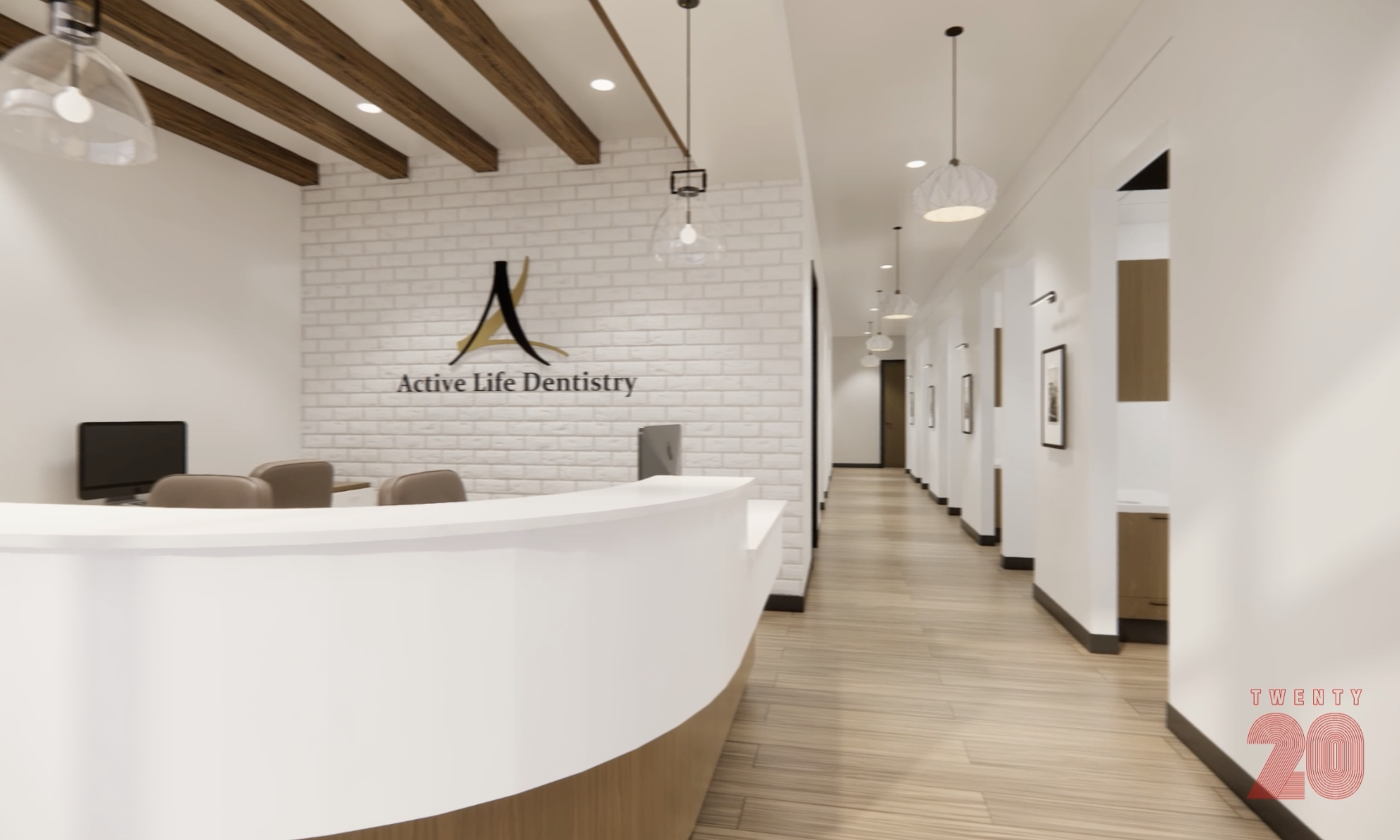 This family dental clinic rendering walks through a carefully planned space, from reception to treatment rooms, designed to feel welcoming at every step.